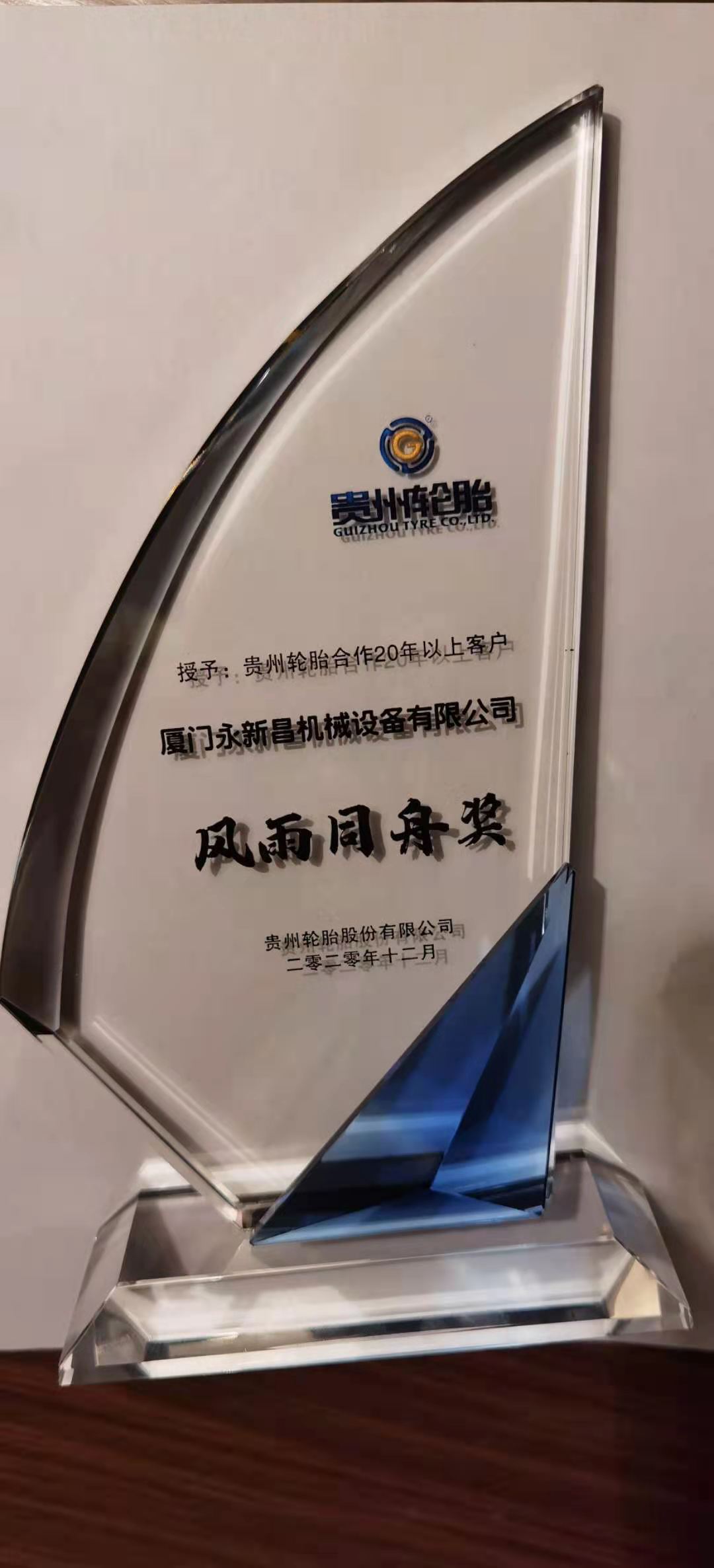 熱烈祝賀廈門永新昌機(jī)械設(shè)備有限公司獲得貴州輪胎20周年風(fēng)雨同舟獎(jiǎng)!_公司動(dòng)態(tài)_資訊動(dòng)態(tài)_廈門永新昌機(jī)械設(shè)備有限公司
