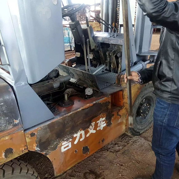 5、不以標(biāo)準(zhǔn)叉車來比對參數(shù):如輪胎型號、門架結(jié)構(gòu)、配重(實(shí)鐵的用錘子敲的時候聲音“丁丁”;水泥的只是鐵皮包圍,中間是水泥,鐵錘敲的時候聲音“咚咚”)和車架不能分離。
