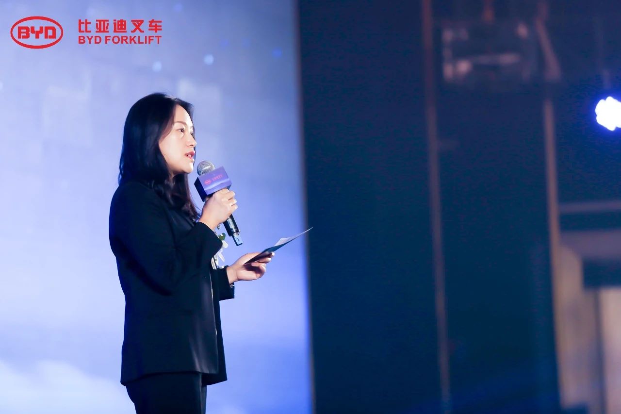 大會(huì)現(xiàn)場(chǎng)“高朋滿(mǎn)座,濟(jì)濟(jì)一堂”,比亞迪叉車(chē)國(guó)內(nèi)銷(xiāo)售總監(jiān)陳麗萍女士首先向在座來(lái)賓致歡迎辭。