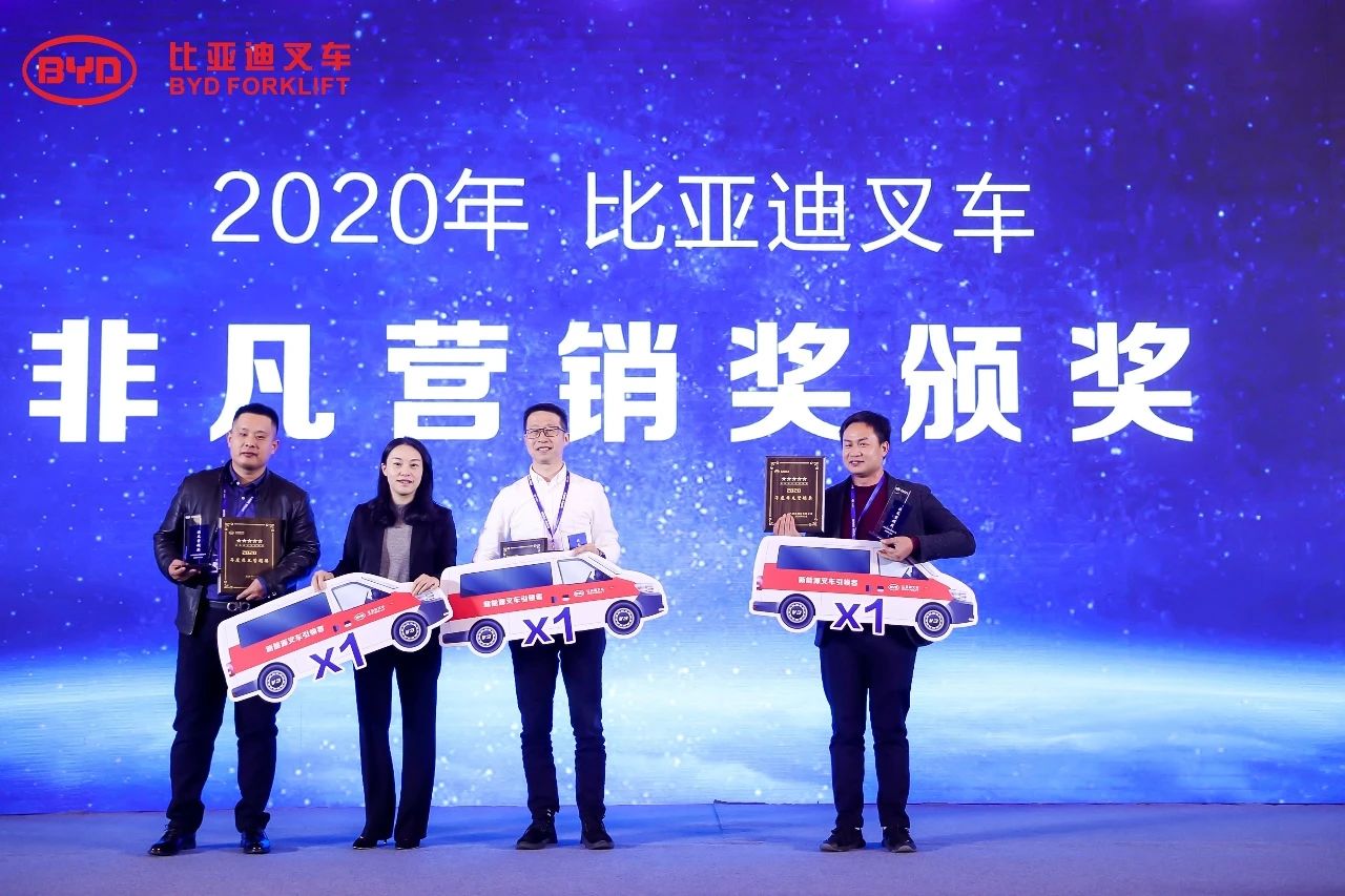大會(huì)同時(shí)頒發(fā)了非凡營(yíng)銷(xiāo)獎(jiǎng)、卓越經(jīng)銷(xiāo)商獎(jiǎng)項(xiàng),也對(duì)在2020年銷(xiāo)售業(yè)績(jī)表現(xiàn)突出的經(jīng)銷(xiāo)商進(jìn)行了獎(jiǎng)勵(lì),以感謝他們對(duì)比亞迪叉車(chē)發(fā)展做出的杰出貢獻(xiàn)。