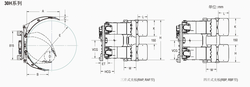 | Capacity 承載能力(kg) | Catalog Order NO 型號(hào) | Mounting Class 安裝等級(jí) | Roll Range 紙卷直徑 D-E(mm) | Long Arm Length 長臂長度 A(mm) | Short Arm Length 短臂長度 B(mm) | Long Arm Thickness 長臂厚度 C(mm) | Short Arm Type 短臂類型 | Contact Pad Size Long Arm 長臂夾板尺寸 K×L(mm) | Contact Pad Size Short Arm 短臂夾板尺寸 H×W(mm) | Vertical Ctr.of Gravity 垂直重心VCG | Weight 自重(kg) | Effective 失載距ET(mm) | Horizontal Center of Gravity 水平重心CGH(mm) |