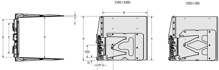 | Capacity 承載能力(kg) | Catalog Order NO 型號 | Mounting Class 安裝等級 | Opening Range張臂范圍(mm) | Arm Height臂高A(mm) | Arm Length臂長B(mm) | Vertcial Center Of Gravity垂直重心VCG(mm) | Load Center載荷中心(mm) | Overall Width總寬D(mm) | Hook Spread上鉤外側間距(mm) | Weight 自重(kg) | Effective 失載距ET(mm) | Horizontal Center of Gravity 水平重心CGH(mm) |